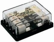 4fach-Sicherungshalter/Verteiler, Kabeleinlass: 1 x Ø 8mm, 4 x Ø 5mm, vollisoliert, vergoldet, zur Aufnahme der Starkstromsicherungen der Serie CPF-...G. Abmessungen (BxHxT): 77x31x102mm. Auch in Zukunft werden wir bemüht sein, die besten Angebote und kürzesten Lieferzeiten zu bieten! Sollten Sie irgendeinen Artikel bei uns teuerer finden als woanders, scheuen sie sich nicht, unseren Slogan "Mit uns kann man reden" beim Wort zu nehmen. Nennen Sie uns Ihre Telefonnummer, E-mail Adresse oder Faxnummer und wir melden uns schnellstens. Es lohnt sich garantiert - immer! plus@plus-elektronik.de ist für Sie die richtige Adresse!! 05471 - 8122 immer erreichbar!