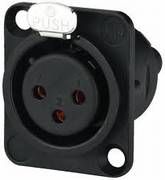 NEUTRIK-XLR-Einbauarmaturen, 3-polig, mit Schraubanschlüssen, für Leiterquerschnitte 0,14-0,5 mm2, vernickelte Kontakte, D-Serien-Standard. NC-3FDS1B = Einbaubuchse