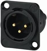 NEUTRIK-XLR-Einbauarmaturen, 3-polig, mit Schraubanschlüssen, für Leiterquerschnitte 0,14-0,5 mm2, vernickelte Kontakte, D-Serien-Standard. NC-3MDS1B = Einbaustecker