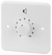 ELA-Einbau-Lautstärkesteller Abschwächung in 10 Stufen, Stufe 0 ist AUS Audio-Transformator für 100-V-Übertragungstechnik Frontplatte und Knopf aus weißem Kunststoff Unterputzmontage, Aufputzmontage mit passenden, optional erhältlichem Einbaugehäuse ATT-200 Technische Daten: Bitte Artikelzeile anklicken